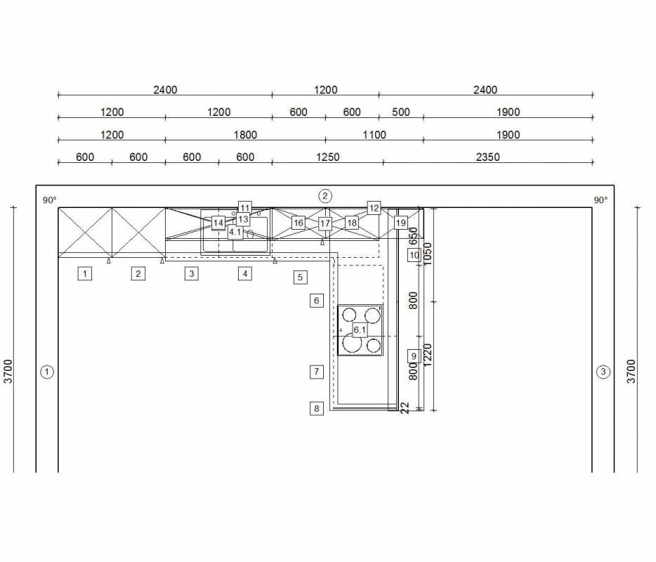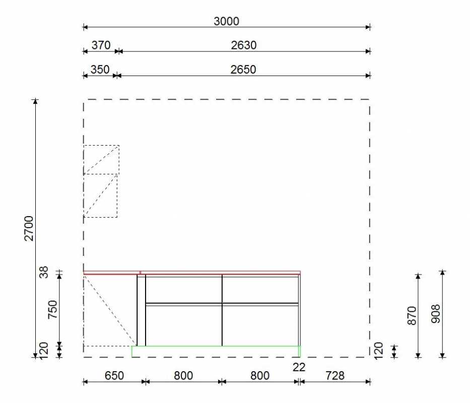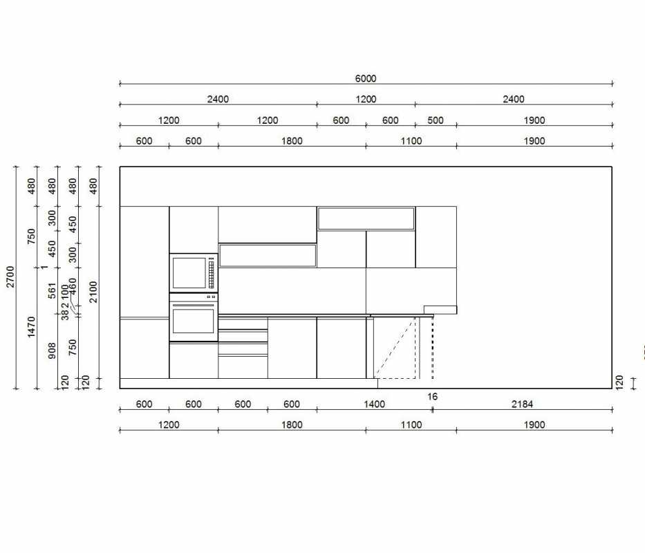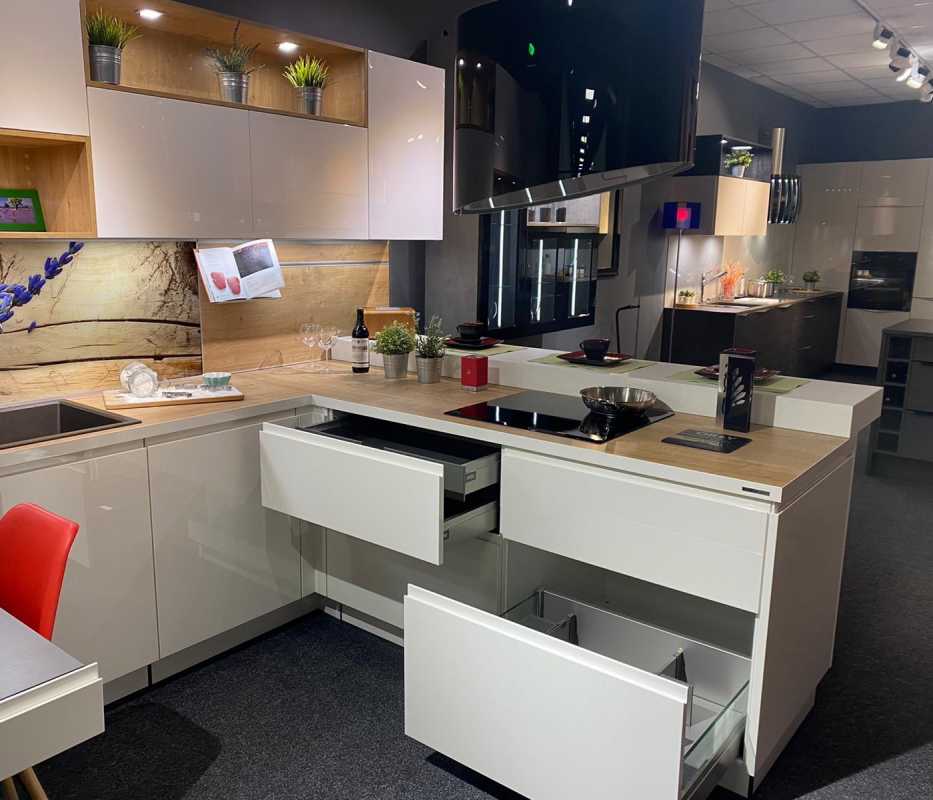- szafka dolna z szufladami, w tym jedna szuflada z wysuwanym stolikiem (możliwość zamiany szafki na front do zmywarki) szer. 60 cm